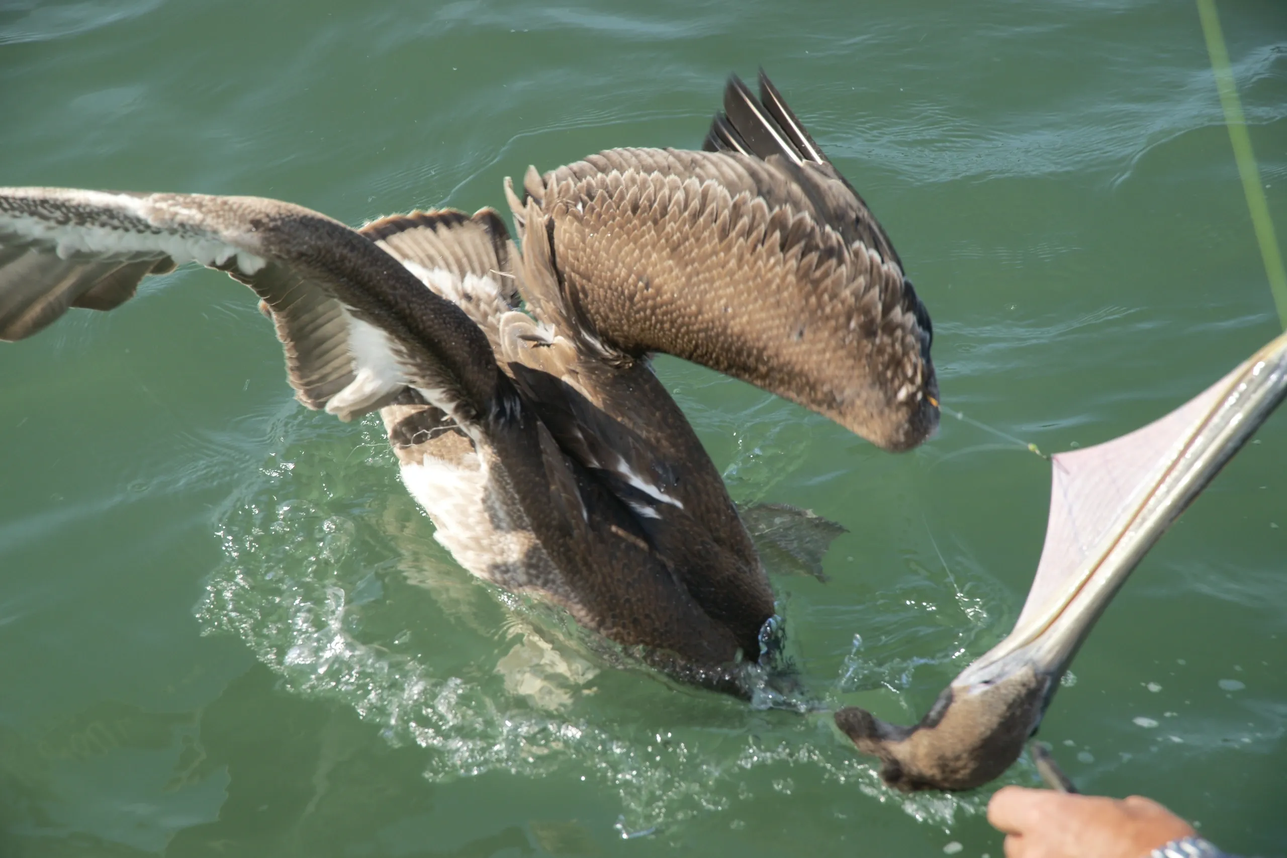 So we did emergency procedure to untangle the wire from the bird and released it back into the water. By touching the wildlife we may have run afoul of the law but that bird needed to be rescued. The most gratifying thing was it was able to fish soon after without any issues as you can see the two photos below. So that pelican did make it a priority to make a living (or to live) before it decided to enjoy its life.
