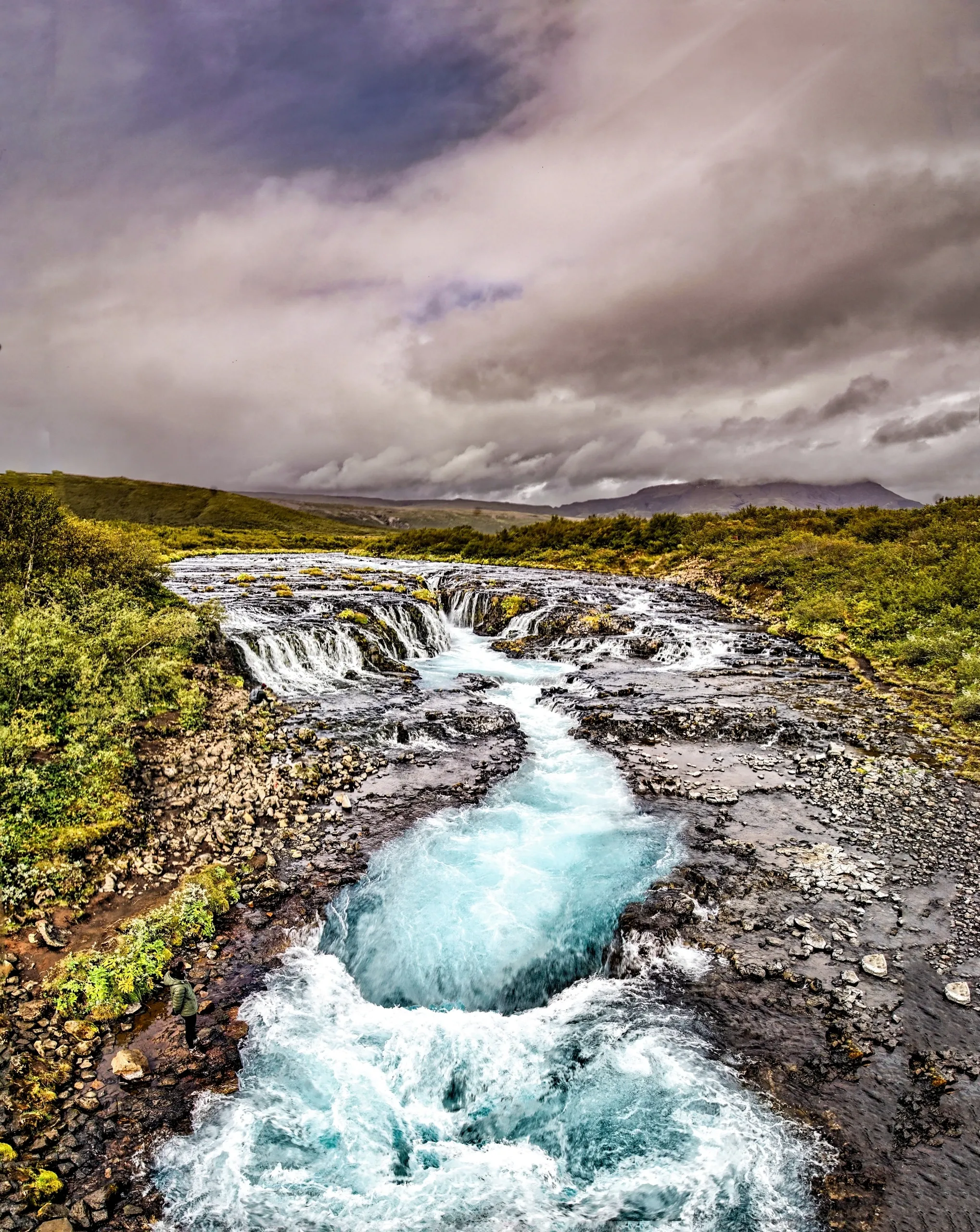 I was recently on a photography tour in Iceland. I was dreaming of capturing some phenomenal landscapes, with blue water, milky white, foamy waterfalls, and fantastic skies. I was ready with the appropriate gear (full format camera with high resolution sensor, UWA lens, ND filters etc), and all I needed was mother nature to cooperate. Then the reality set in. My full format camera died, forcing me to use a backup camera that is no longer full format, and has the lower resolution. Then mother nature frowned upon me. It was raining, and cloudy, with an occasional break in the sky. Th add insult to the injury, my sensor had more dust spots than the population of an island in West Indies. Here is the example of that reality.