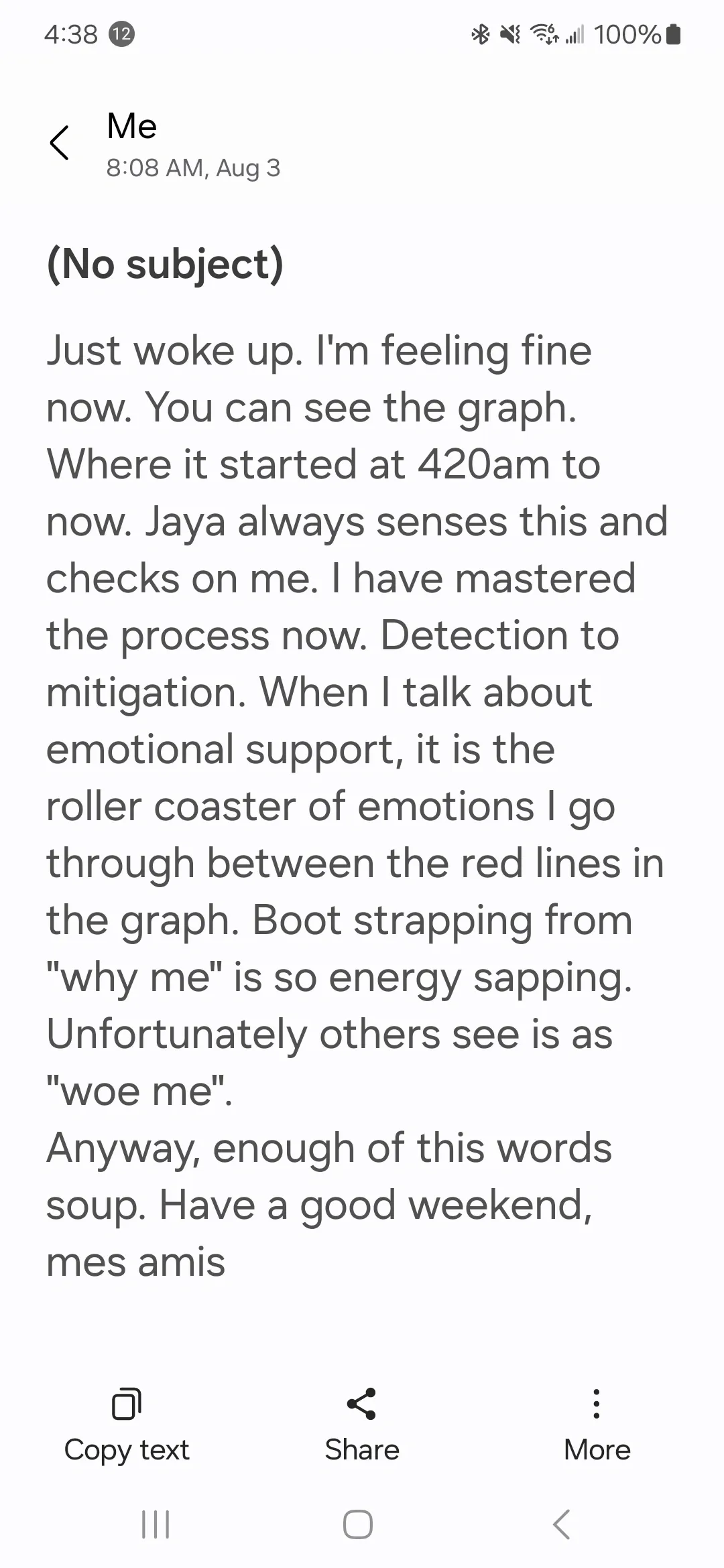 But I digress. I want to share the texts I was exchanging with them after my recovery from one such nocturnal hypoglycemic episode, which now I have become an expert in handling the situation.