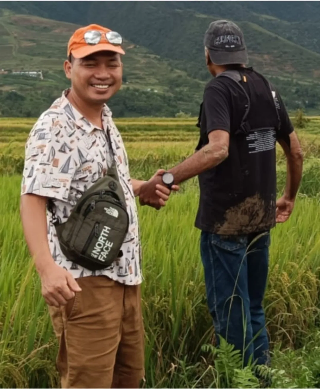 What I did realize or know is that the path you see in the above photo is about two feet or so above the ground on either side of the path. Of course, I decided to go and started walking. At one point, I missed my footing and boom!!! Just like that I landed on my butt, with my camera on my chest, and mud on my t-shirt. Our translator Terry realized I am a bumbling novice and need help.